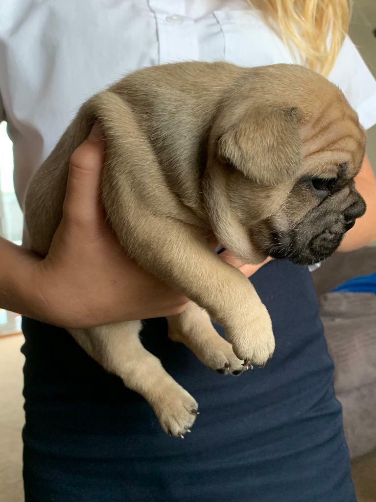 The breed is small and muscular with heavy bone structure, a smooth coat, a short face and trademark bat ears.