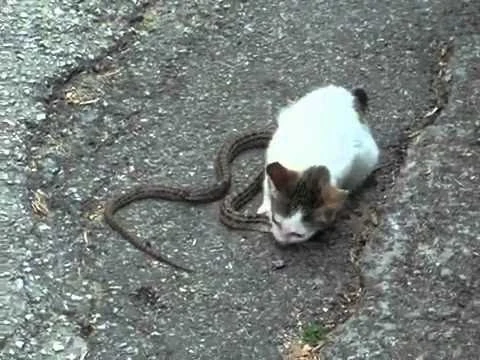 .But snakes can make their mouths so wide, that they can eat a human. Yes, cats do eat snakes and vice versa.